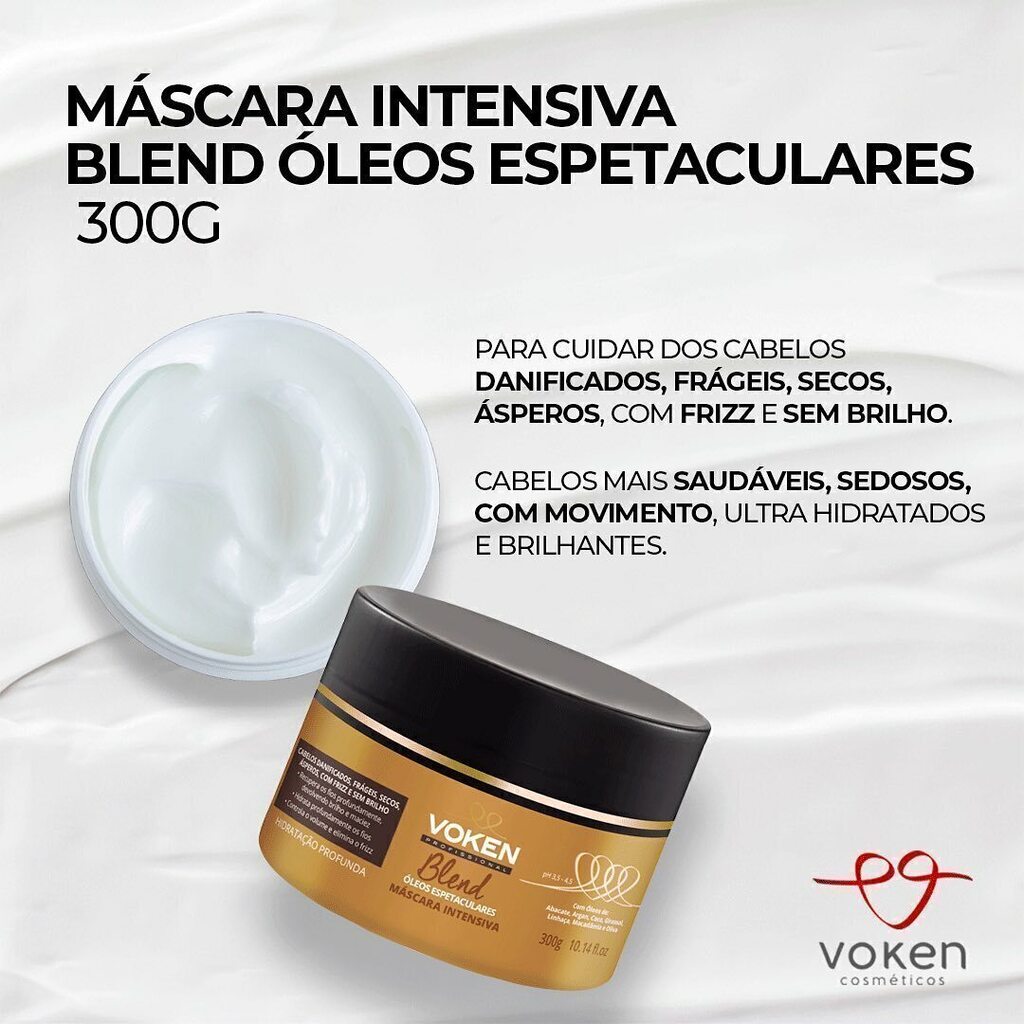 Cansada de cabelos danificados, frágeis, secos, ásperos, com frizz e sem brilho? Sonha em ter fios que exalam saúde, vitalidade e um brilho deslumbrante? A linha completa VOKEN BLEND ÓLEOS ESPETACULARES é a resposta para seus desejos, um tratamento intensivo e luxuoso que resgata a beleza natural dos seus cabelos, transformando-os em uma cascata de maciez, força e luminosidade.