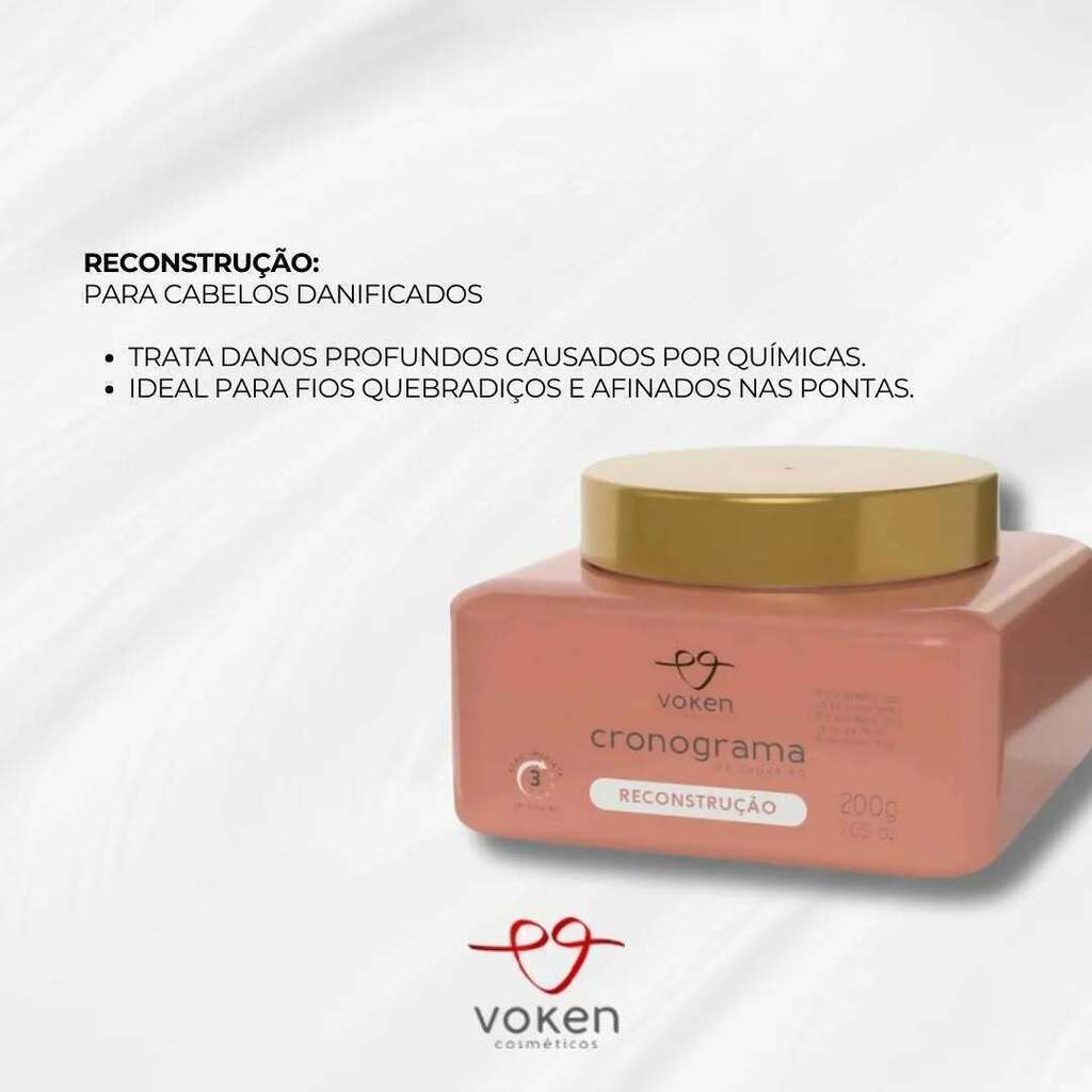 Kit Voken Cronograma de Chuveiro - Hidratação, Nutrição e Reconstrução (200g cada)
